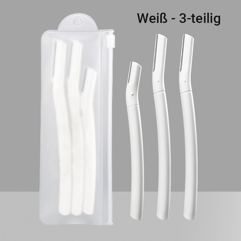SCHNELLE UND EINFACHE PFLEGE - Der 3-teilige Augenbrauenrasierer ist ein vielseitiges Schönheitswerkzeug, mit dem Sie mühelos Ihre Augenbrauen in Form bringen, feine Härchen entfernen und sogar ein sanftes Peeling für einen glatten Teint durchführen können.
