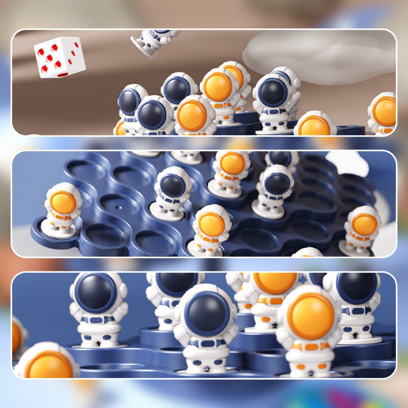 Game 2: The player places the little astronaut in a designated position based on the rolling of the dice, adding an opportunity element to the game. Finally, spinning the big adventure wheel determines the loser who will face punishment.