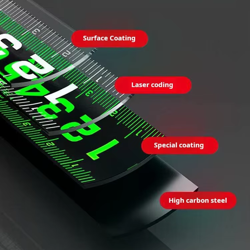 FLUORESCENT COATING WITH LASER MARKINGS: Featuring a bright fluorescent finish for enhanced visibility, paired with laser-engraved, wear-resistant markings for precise measurements and clarity that lasts over time.