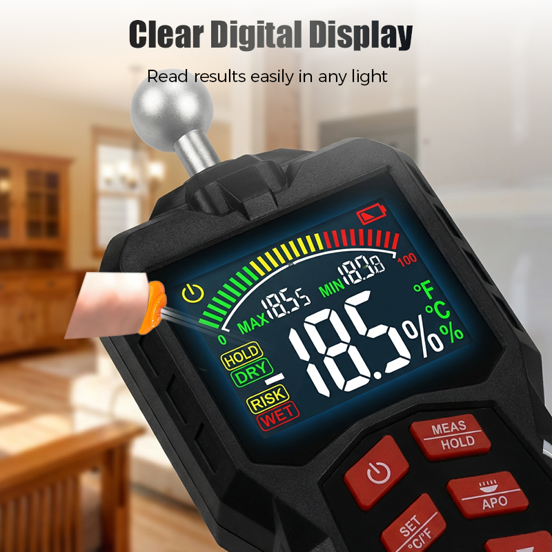 CLEAR HD COLOR DISPLAY - Instantly understand moisture levels with the vibrant, easy-to-read HD color screen. The intuitive interface displays precise readings, battery life, and risk levels, making data interpretation quick and effortless for everyone.