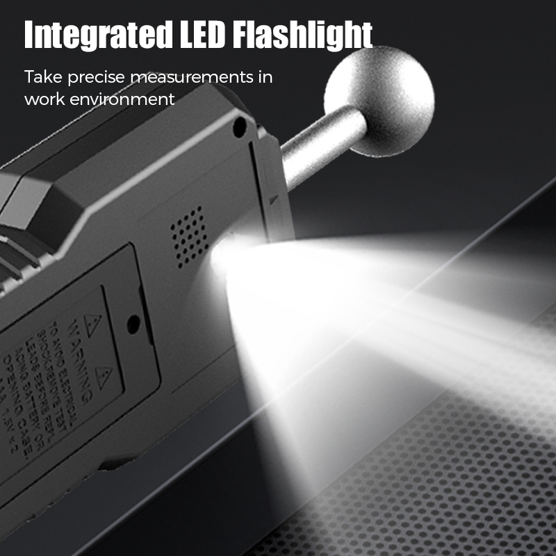 INTEGRATED LED FLASHLIGHT - Illuminate dark and poorly lit areas such as basements, attics, or inside cabinets. This ensures you can take precise measurements safely and easily, regardless of the ambient lighting conditions in your work environment.