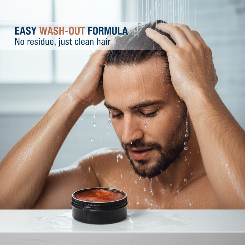 WATER-BASED & EASY RINSE - Forget stubborn, greasy residue that damages hair. This water-soluble pomade washes out easily with just water, leaving no buildup. Enjoy a clean scalp and healthy hair with a simpler daily routine.