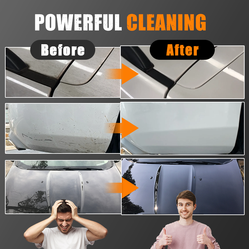 POWERFUL CLEANING – REMOVES TOUGH STAINS: This cleaner tackles messes that regular soap just can’t handle. From sticky tree sap and bird droppings to baked-on bug residue and tar, it penetrates deep to loosen stubborn buildup—even after hours in the sun. Just spray, wipe, and see your car look like new again, without endless scrubbing or risking damage.