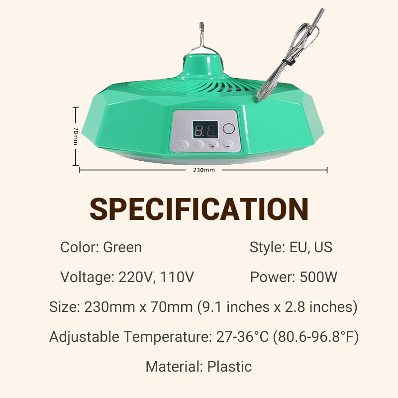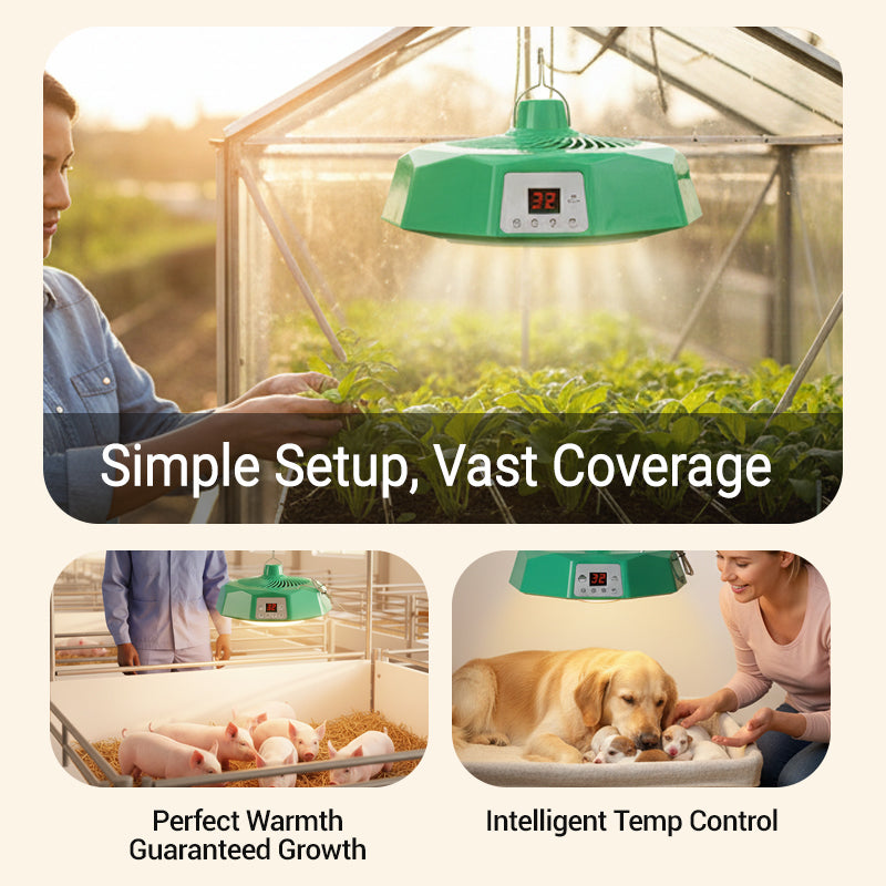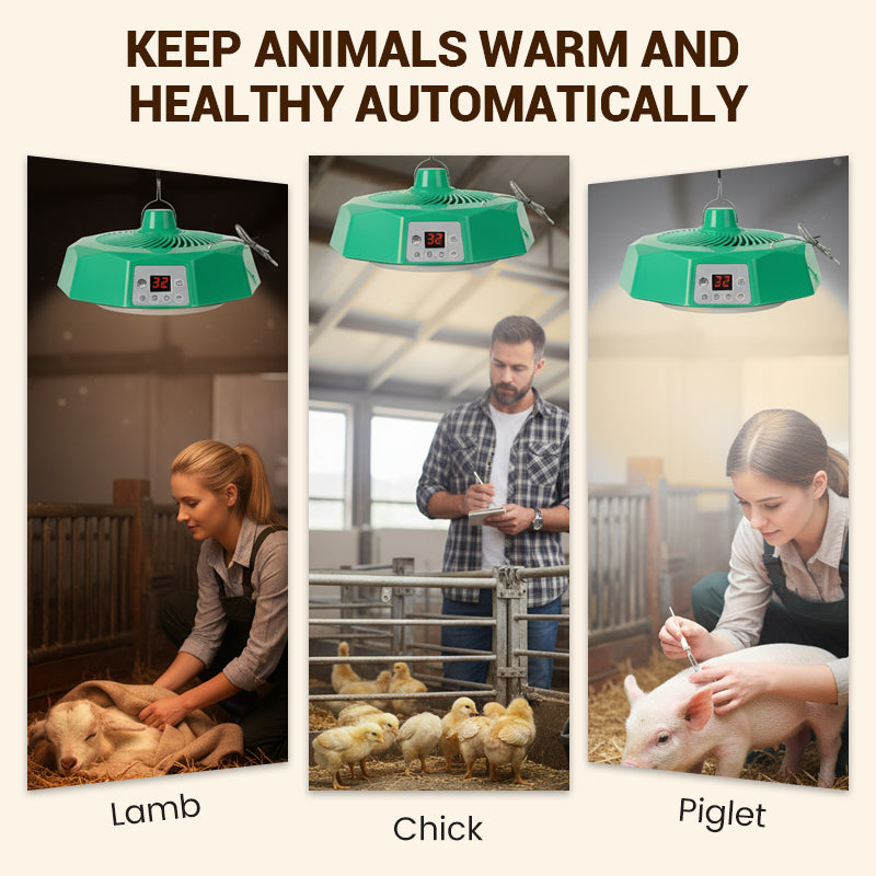 INTELLIGENT TEMPERATURE CONTROL - Maintain the perfect environment for your animals. Set a temperature between 27°C-36°C, and the lamp automatically adjusts, ensuring your livestock or pets stay warm and healthy without constant manual oversight.