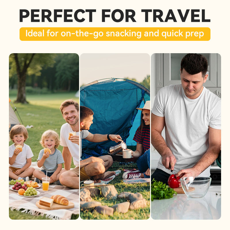 3-IN-1 MULTI-TOOL: Combines a fruit peeler, mini knife, and box cutter in one compact tool—perfect for everyday kitchen tasks, travel, and unboxing.
