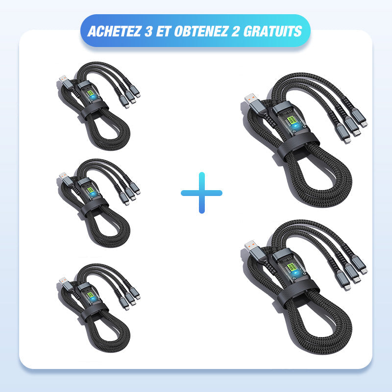 🔥2025 Ventes Chaudes🔥Chargement super rapide 100w, câble de données transparent 3-en-1