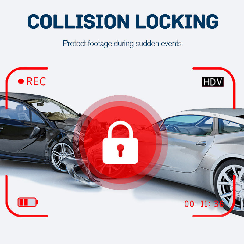 VERROUILLAGE D'URGENCE EN CAS DE COLLISION : protégez les séquences critiques en cas d'urgence. Le capteur de gravité 3 axes intégré verrouille les enregistrements dès qu'il détecte une collision ou un freinage brusque, empêchant ainsi l'écrasement des séquences.