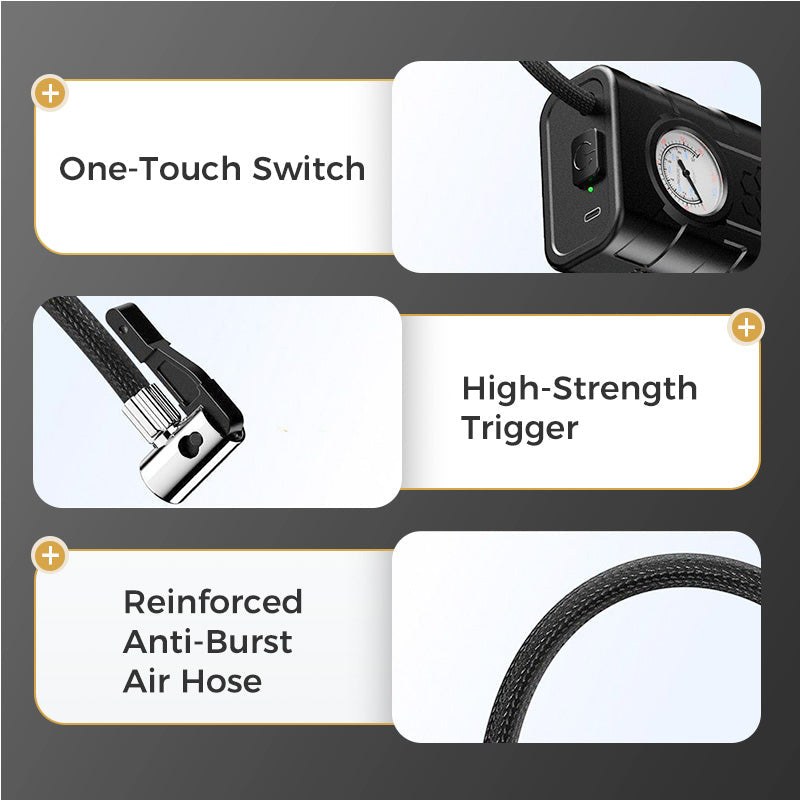 GONFLAGE RAPIDE ET MESURE DE PRESSION PRÉCISE : Cette pompe à air sans fil pour voiture est conçue pour un gonflage rapide, vous permettant de remplir vos pneus rapidement et efficacement. Grâce à un manomètre précis, vous pouvez surveiller facilement la pression de vos pneus, garantissant ainsi des performances optimales et une sécurité accrue. Plus besoin d’attendre — reprenez la route en un rien de temps avec des mesures fiables à portée de main.